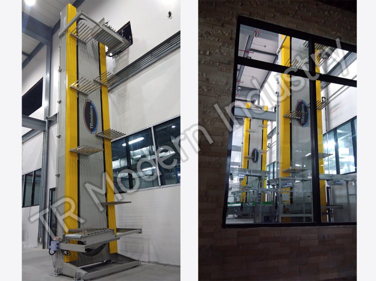 and top-to-bottom conveying. The compact-size lifter saves installation space (comparing with the traditional conveyor belt that requires a long inclined space). It comes with a beautiful design, easy installation, user friendly. Our company is a leader in designing and manufacturing machines that meet engineering standards. This vertical conveyor can support a part weights up to 20 Kg., it can be used in various industrial fields such as food, cosmetics, chemicals, automotive, electronic fields.