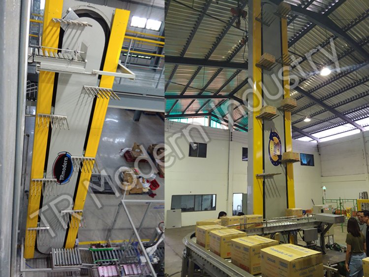 The vertical conveyor system can convey goods continuously, both in bottom-to-top